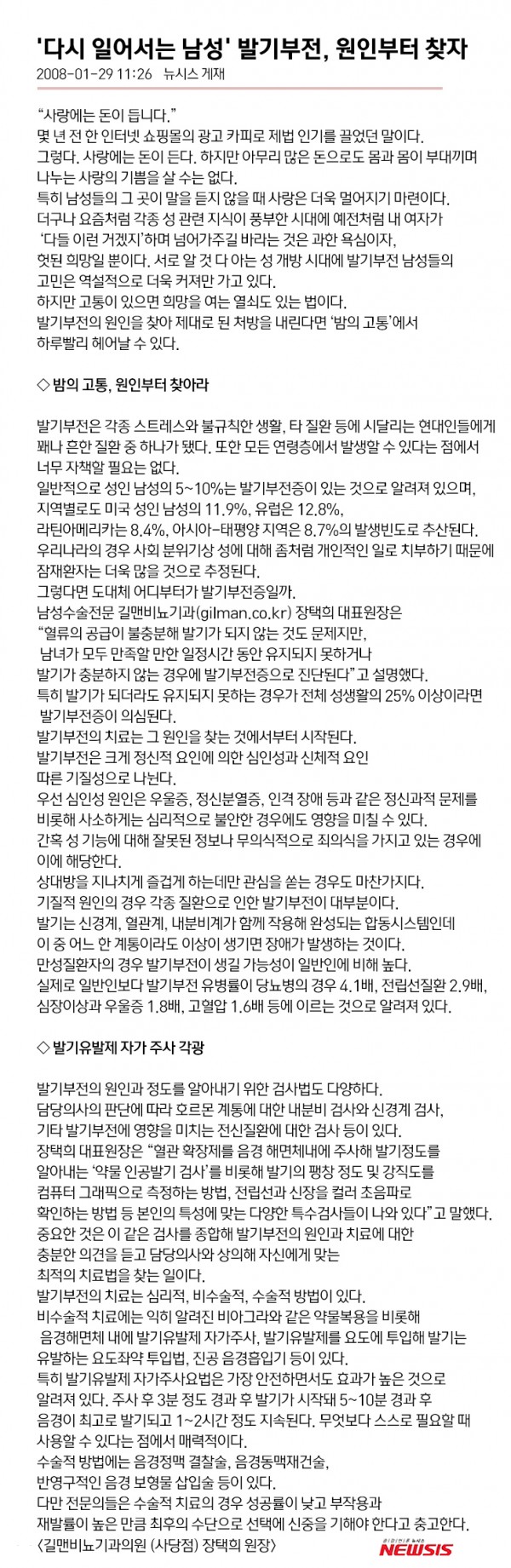 NO. 7 지점 작성일 2016.08.09 조회수 3,763 제목 '다시 일어서는 남성' 발기부전, 원인부터 찾자 관련링크 본문 2008년 1월 29일 뉴시스게제 이전글 다음글 목록보기